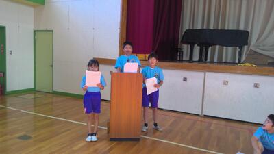 今日の朝活動は、表彰朝会を行いました。