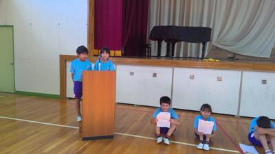 10月17日㈫に4年生主催の陸上競技大会壮行会をビデオ放送にて行いました。