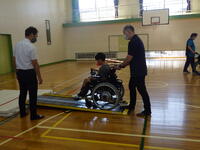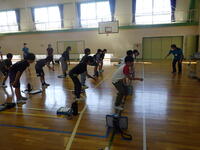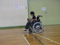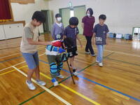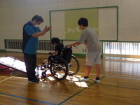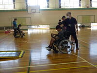 高齢者の体の変化について教わった後、車いす体験、高齢者疑似体験を行いました。