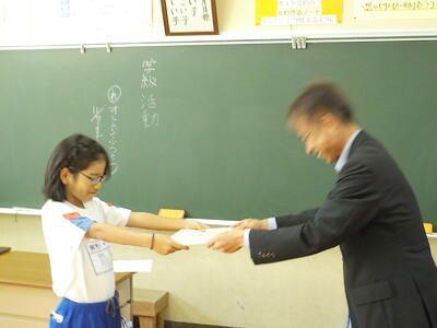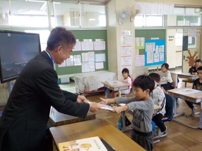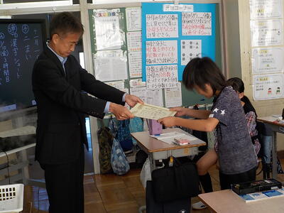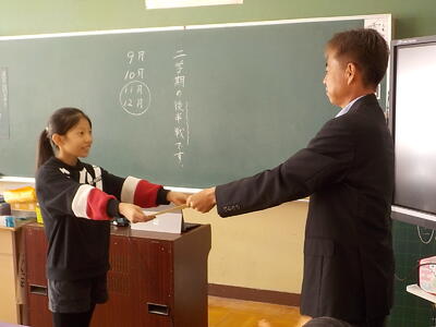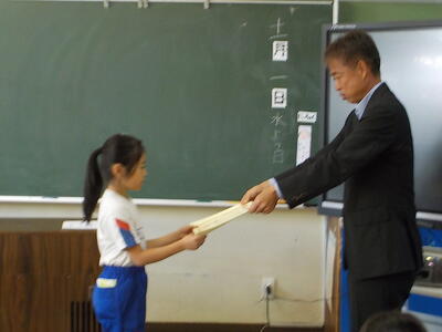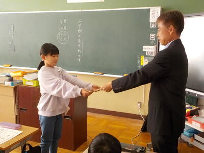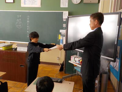 校長が各学級をまわり、一人ひとりに賞状を手渡すと、みんなから大きな拍手が起こりました。