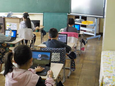 今年初めてのにこにこタイムがありました。各学級、パソコンを使い、熱心に取り組みました。